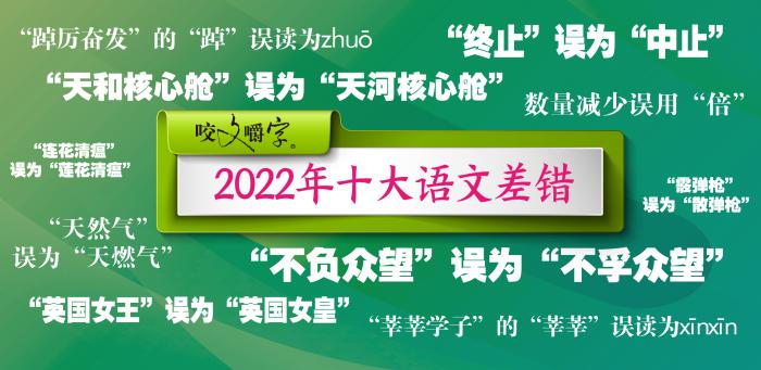 11日,《咬文嚼字》编辑部公布了2022年十大语文差错,其中包括“踔厉奋发”的“踔”误读为zhuō、“连花清瘟”误为“莲花清瘟”、“终止”误为“中止”等等。