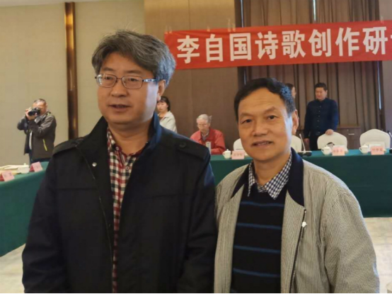 省作协副主席、《星星》诗刊主编与诗人李自国(右)合影