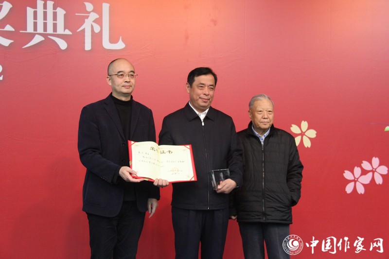 中国作协副主席何建明宣读本届荣誉奖的作家名单