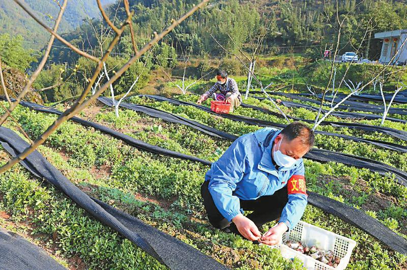 宜宾市兴文县古宋镇青山岩村第一书记(前)帮助贫困户采收赤松茸。本版图片均由受访者提供