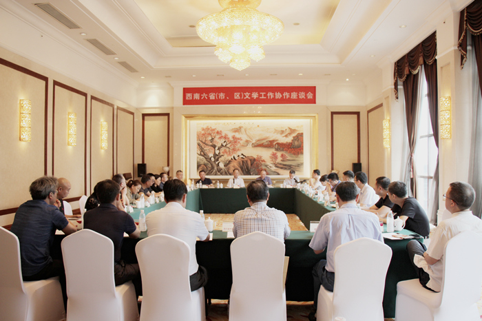 四川省作协党组书记、常务副主席侯志明首先介绍了四川省作协、地市州作协以及省作协近期文学工作情况,并提出建议希望西南六省能结合西南六省(市、区)少数民族众多的优势特色,为文学工作协作注入新的生命内涵。接下来,云南、贵州、重庆、广西、西藏各省(市、区)作协参会领导相互介绍了各自的文学工作情况,各作协就新形势下繁荣文学发展的新举措、作协和文学工作的新思路进行了交流探讨,探索开展区域文学交流合作项目的可行性。