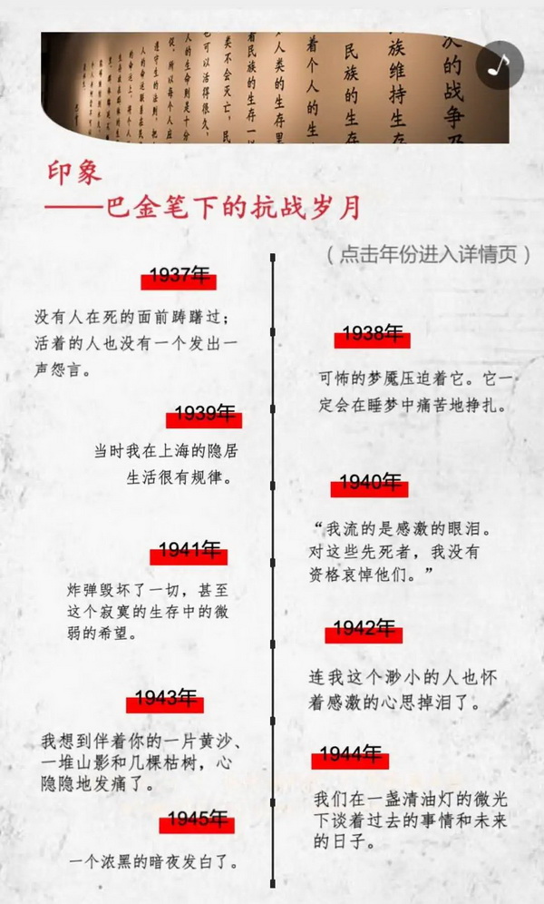 拉动时间轴,跟着巴金笔下的文字重温当年的岁月