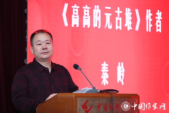 作家秦岭在会上发言