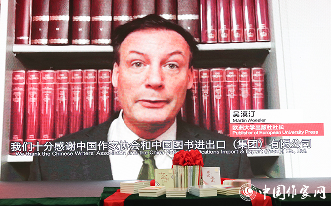德国欧洲大学出版社社长吴漠汀通过视频发言