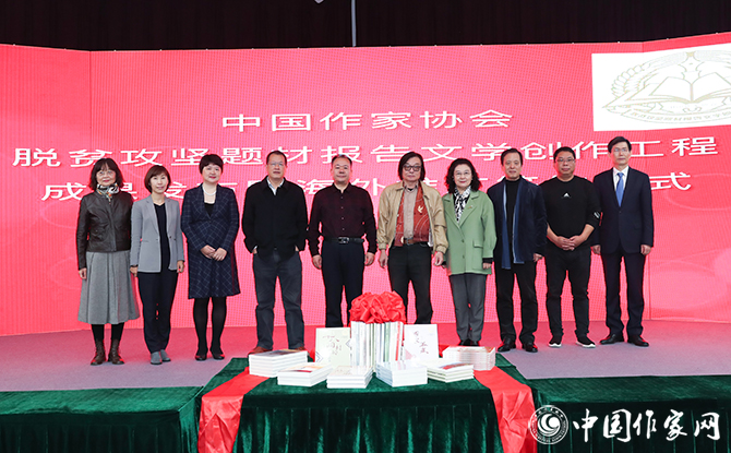 10月30日,中国作家协会脱贫攻坚题材报告文学创作工程成果发布暨海外推广签约仪式在京举行。中国作协党组成员、副主席李敬泽,中国图书进出口(集团)有限公司执行董事、党委书记张纪臣为创作工程图书揭幕并致辞。中国作协创研部主任何向阳主持仪式。王松、秦岭、艾平、罗伟章等参加脱贫攻坚题材报告文学创作工程的作家,以及多家出版社代表参加仪式。