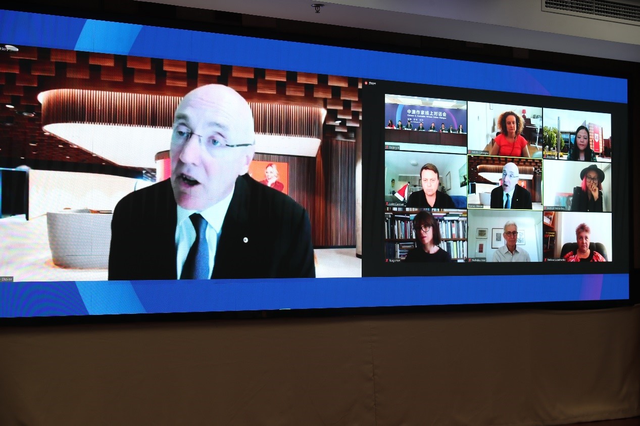 葛班尼在致辞中介绍了中澳两国文学交流的情况。自2011年起,中国作家协会和西悉尼大学共同举办了五届中澳文学论坛,形成了隔年互办论坛的机制,两国作家面对面研讨对话的形式加深了对彼此文学世界的理解,也为两国读者创造了认识对方国家文化的机会。随着文学交流活动越来越丰富,两国作家间的友好关系也在不断增强。他表示,文学创作是整体文化的重要组成部分,建立切实有效的交流平台,加强交流对话的深度,对于两国文学的发展具有重要意义。他对中国作协在新冠疫情肆虐全球的当下,促成本次以“疫情·思考·创作”为主题的线上对话活动表示感谢。