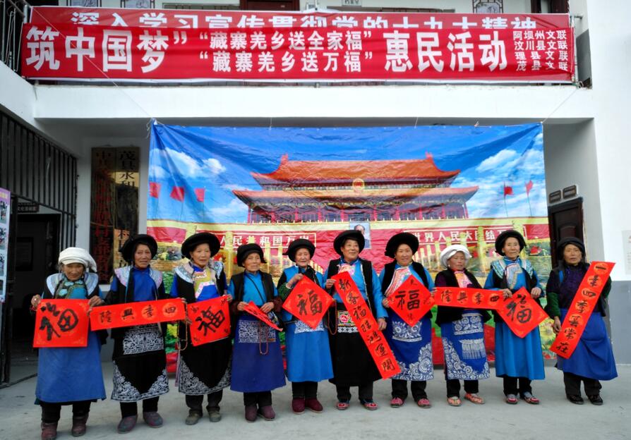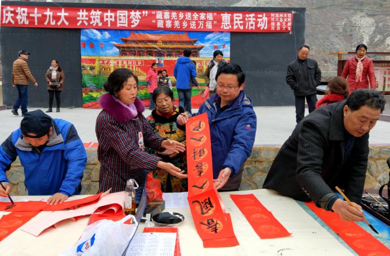 11月24日到27日,由阿坝州文联主办,理县、茂县、汶川文联协办的“庆祝十九大,共筑中国梦”藏寨羌乡送万福、藏寨羌乡送全家福惠民活动在理县、茂县、汶川相继开展。