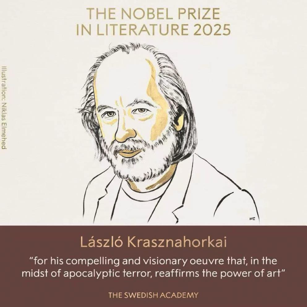 “他那震撼人心、富有远见的创作,在灾难与恐惧中,重申了艺术的力量。”北京时间10月9日晚,2025诺贝尔文学奖在瑞典斯德哥尔摩揭晓,71岁匈牙利作家拉斯洛·克拉斯纳霍尔凯获奖。