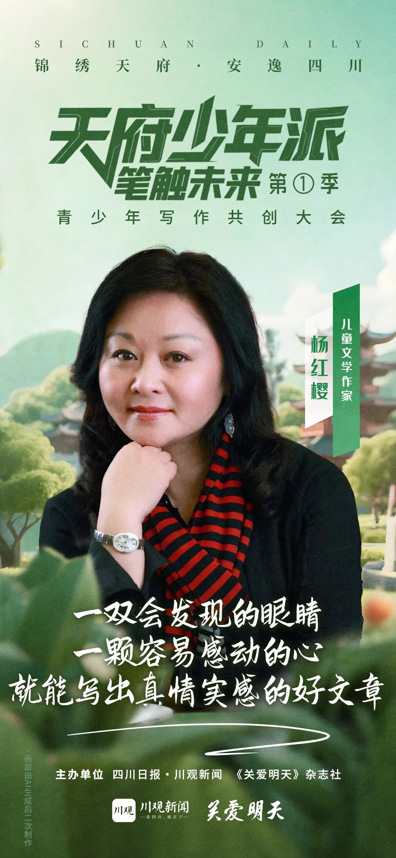 好消息!三位儿童文学作家——杨红樱、北猫、廖小琴给“天府少年派”青少年写作共创大会送来寄语啦!