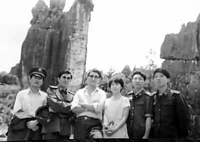 1986年,已成为编辑的裘山山(左四)和海波(左三)在昆明笔会相逢。
