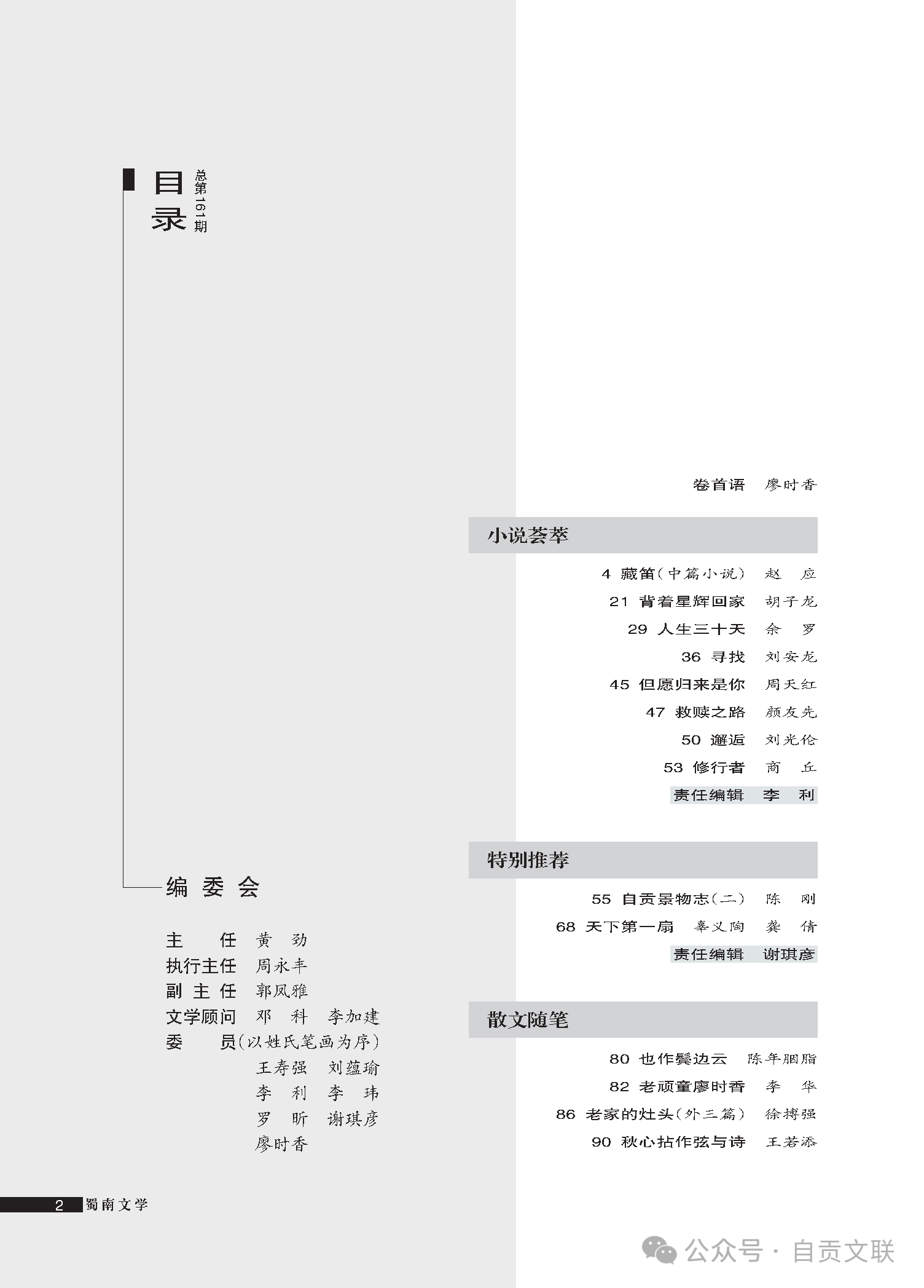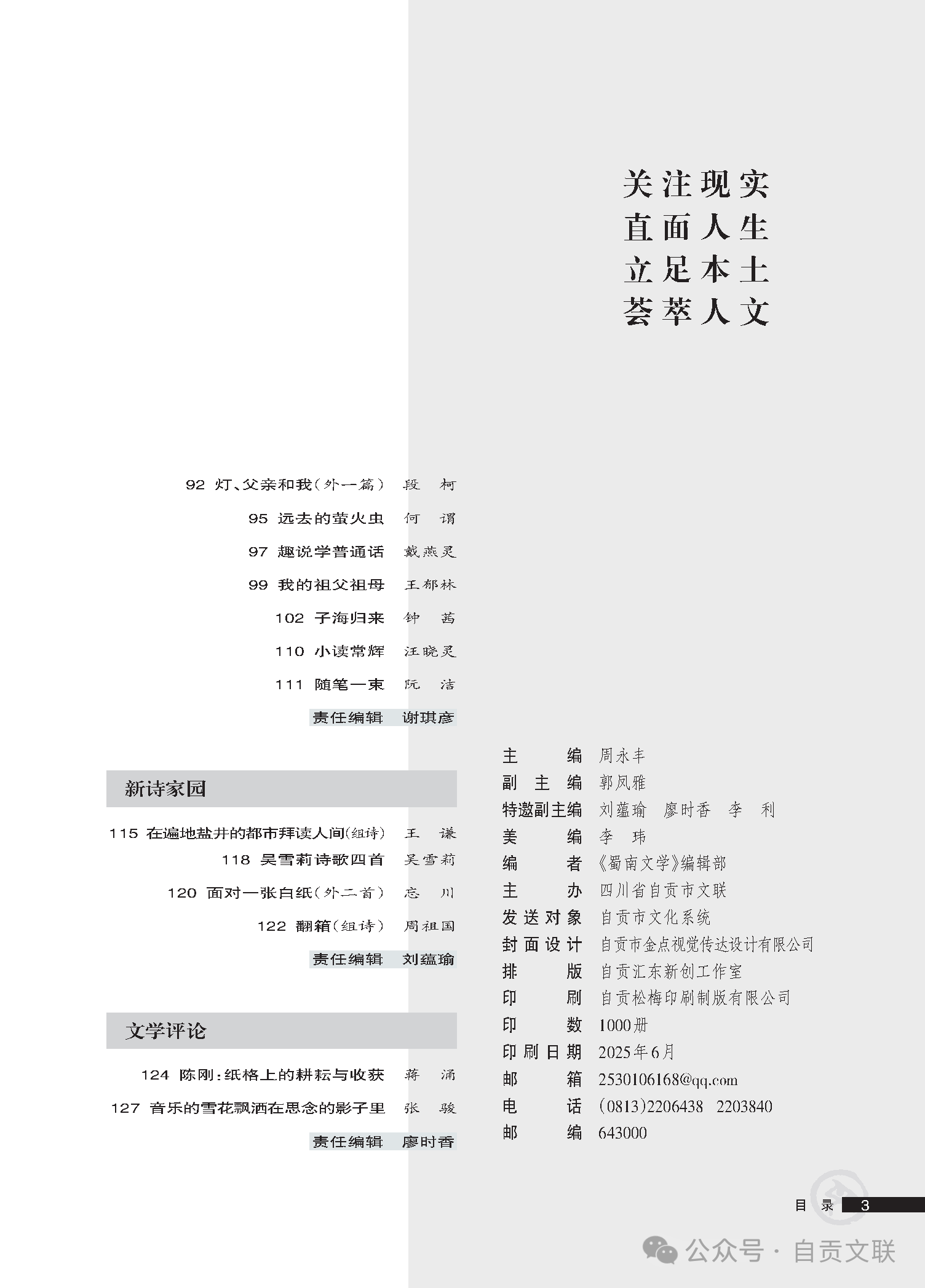 《蜀南文学》2025年第2期目录