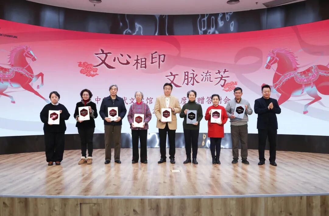 邱华栋向参加活动的全体捐赠者代表颁发“文学馆之友”纪念牌。他在致辞中表示,感谢大家对文学馆的殷殷关怀和慷慨襄助,以真挚的文化情怀与无私的奉献精神为这座文学殿堂添砖加瓦,为中国文学的传承注入了鲜活持久的力量。大家所捐赠的正是中国文学生生不息的“根”与“源”,是我们认识文学历程、触摸时代脉搏、传承精神基因不可或缺的宝贵财富。2025年,文学馆共接收来自583位(家)个人和团体捐赠的文学资料2万余件,馆藏总量达到100万件。文学馆将以对历史、对民族、对文学负责的态度,确保所有入藏资料妥善保存,进一步加强精细化管理,自觉担当起国家一级博物馆的使命。同时,以更大力度推动馆藏文物的学术研究、数字化转化与创新性传播,让收藏在库房里的文物“活起来”,让这些文学遗产真正在新时代绽放光彩,滋养人心。