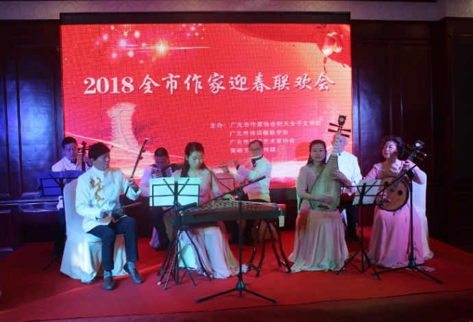 本次活动由广元市作家协会则天女子文学社、广元市诗词楹联学会、广元市朗诵艺术家协会、策略王展演传媒联合主办。12个朗诵、快板、相声、演唱、民乐演奏节目精彩纷呈。蔡红、王逸少、宇峰、英子等市内资深朗诵、主持艺术工作者倾情演绎,老中青少同台携手。这台彰显文学特色,展示语言艺术魅力的联欢会获得与会文友高度好评。