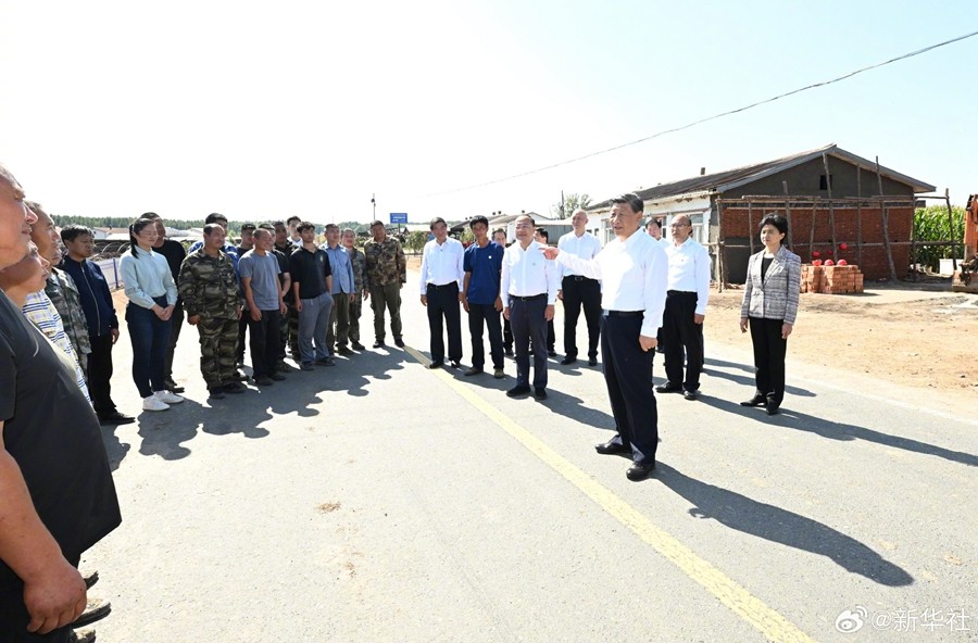 7日上午,习近平总书记来到遭受洪涝灾害的哈尔滨尚志市老街基乡龙王庙村,走进农田察看水稻受灾情况,沿着村街道步行察看两旁受损房屋、基础设施修复重建进展,并走进村民家中看望慰问,详细了解家里受灾和生活保障情况,希望大家坚定信心、战胜困难,早日恢复正常生产生活秩序,日子越过越红火。(文字记者:张晓松、林晖;摄影记者:谢环驰、丁海涛、殷博古)
