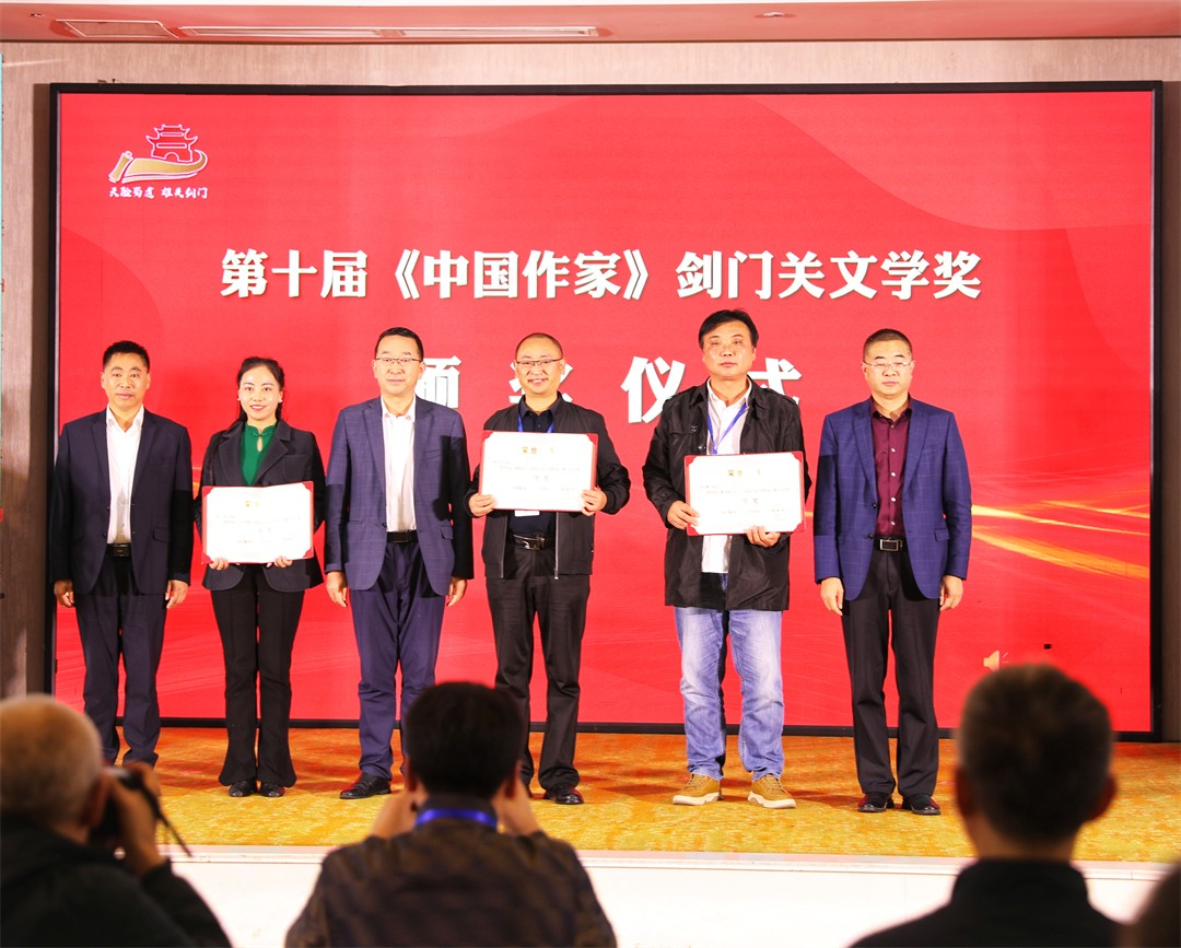 剑门蜀道诗歌大会由四川省作协和广元市人民政府共同主办,《星星》诗刊、省作协阿来工作室、广元市委宣传部、广元市作协、剑阁县委县政府等承办,两年一届,已连续举办五届。10日下午,第十届《中国作家》剑门关文学奖颁奖仪式简洁庄重,气氛热烈,张颖、付秀莹、龚学敏、李元胜、袁敏、周建民、李明元、杨祖斌、廖兴泉等为获奖作家颁奖,伍荣华主持了颁奖仪式。《中国作家》剑门关文学奖一等奖获得者章泥、杨晓东,“天险蜀道·雄关剑门”诗歌大赛和“文学之乡”——广元诗词大赛获奖代表周维强、辰水等作家和诗人到现场领奖。