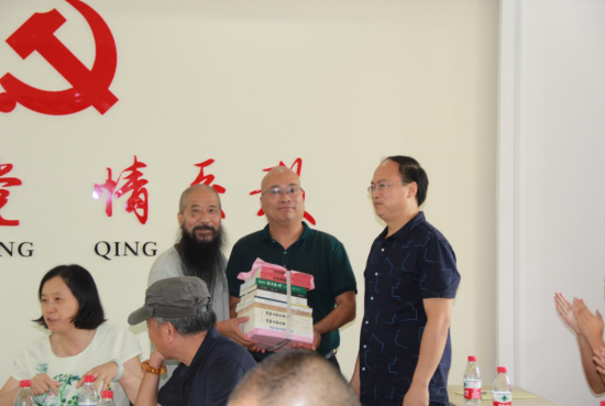 座谈会后,绵阳市作协常务副主席、党支部书记雨田代表市作协向小枧中学笔架山文学社赠送了图书。