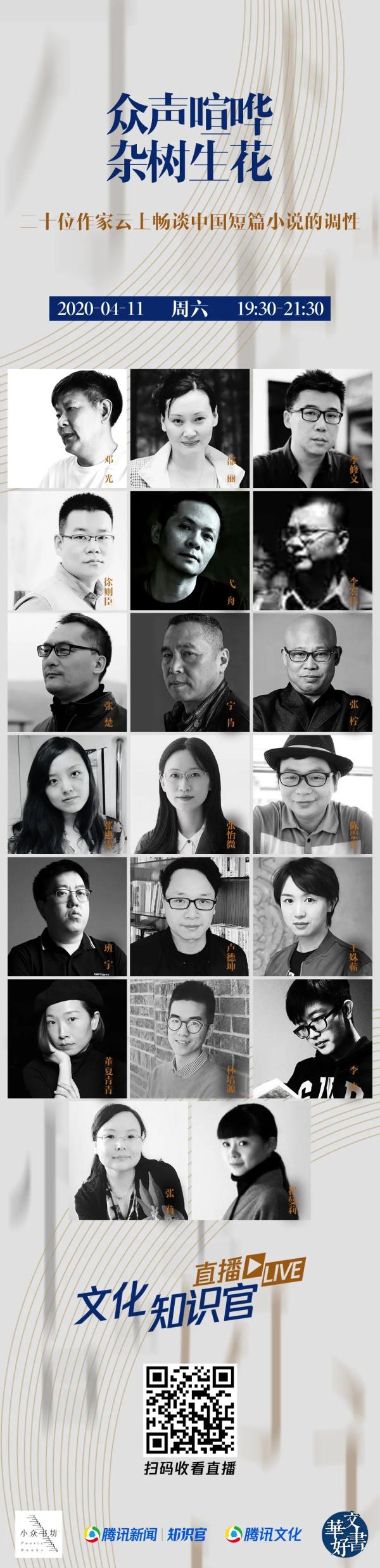 4月11日,作家邵丽、李修文、徐则臣、弋舟、张楚、陈崇正、卢德坤、王姝蕲、林培源、崔曼莉、张莉来到腾讯线上会议室,就中国短篇小说的“调性”各抒己见,畅所欲言。作家邓一光、李宏伟、张怡微、张柠、张惠雯、班宇、李唐也发来了视频录播。当晚约有14多万读者云上观看了这场聚会。