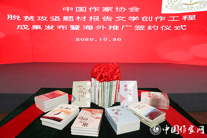 10月30日,中国作协脱贫攻坚题材报告文学创作工程成果发布暨海外推广签约仪式在京举行