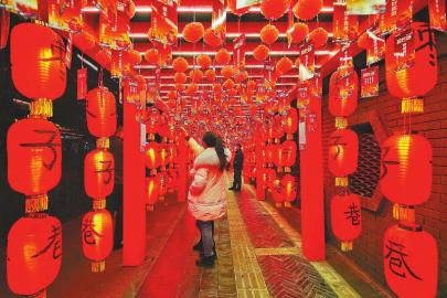 成都枣子巷市民兴致勃勃地猜灯谜。 四川日报全媒体记者华小峰摄