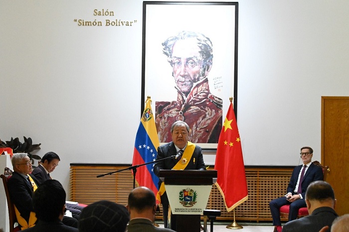 吉狄马加说,“弗朗西斯科·米兰达”一级勋章是委内瑞拉一项至高的荣誉,从1943年设立以来授予过许多做出过杰出成就的人士。作为一位中国诗人,自己为能成为这个精神家族中的一员而倍感光荣,因为勋章以拉丁美洲独立运动的先驱、委内瑞拉第一共和国的领袖弗朗西斯科·德·米兰达的名字命名,体现了拉丁美洲和委内瑞拉人民争取美洲权力、自由以及捍卫人类崇高事业的精神。他认为这一精神对于今天的世界依然显现出重要的价值,特别是在当下人类所面临的复杂而充满了不确定性的现实面前,打破一切人为的壁垒和障碍,构建真正意义上的人类命运共同体,这无论是对于中国,对于委内瑞拉,还是对全世界所有的国家都是至关重要的。他表示:“多年来我一直关注委内瑞拉人民选择自己的发展道路、反对一切外来干涉的正义斗争,从思想、感情和行动上都与争取和建设更美好新生活的委内瑞拉人民站在一起。我相信,在我们的共同努力下,中国和委内瑞拉两国之间的兄弟情谊、文化和诗歌交流将得到进一步的推动和升华,而我们同样会为这个大多数人倡导多边主义、相互尊重主权、追求国家间和民族间平等祥和的世界树立光辉的榜样。”