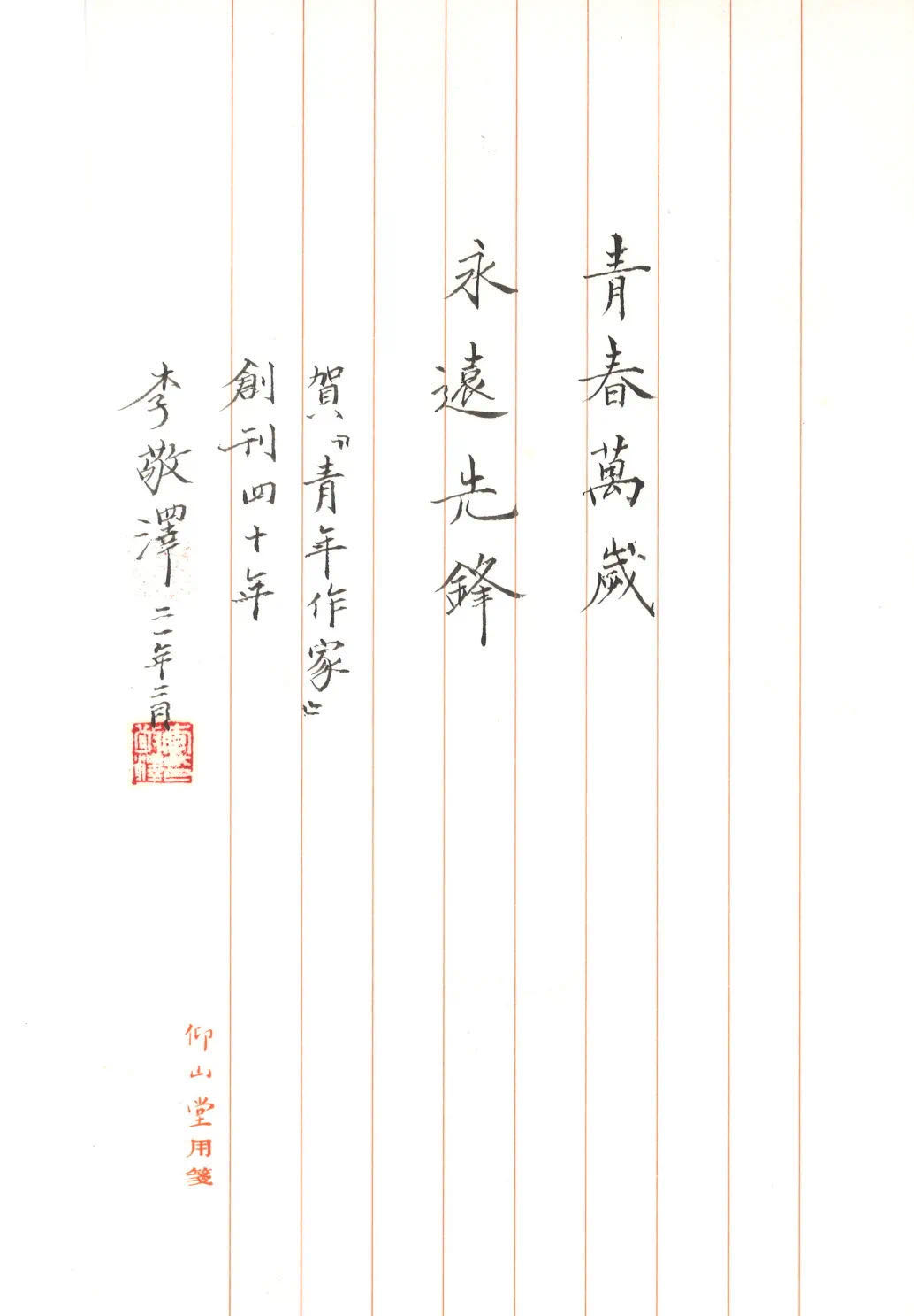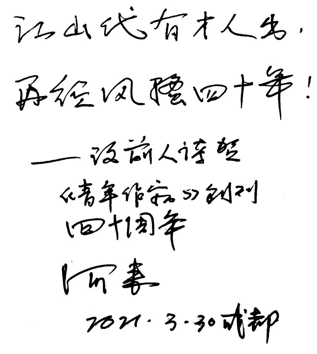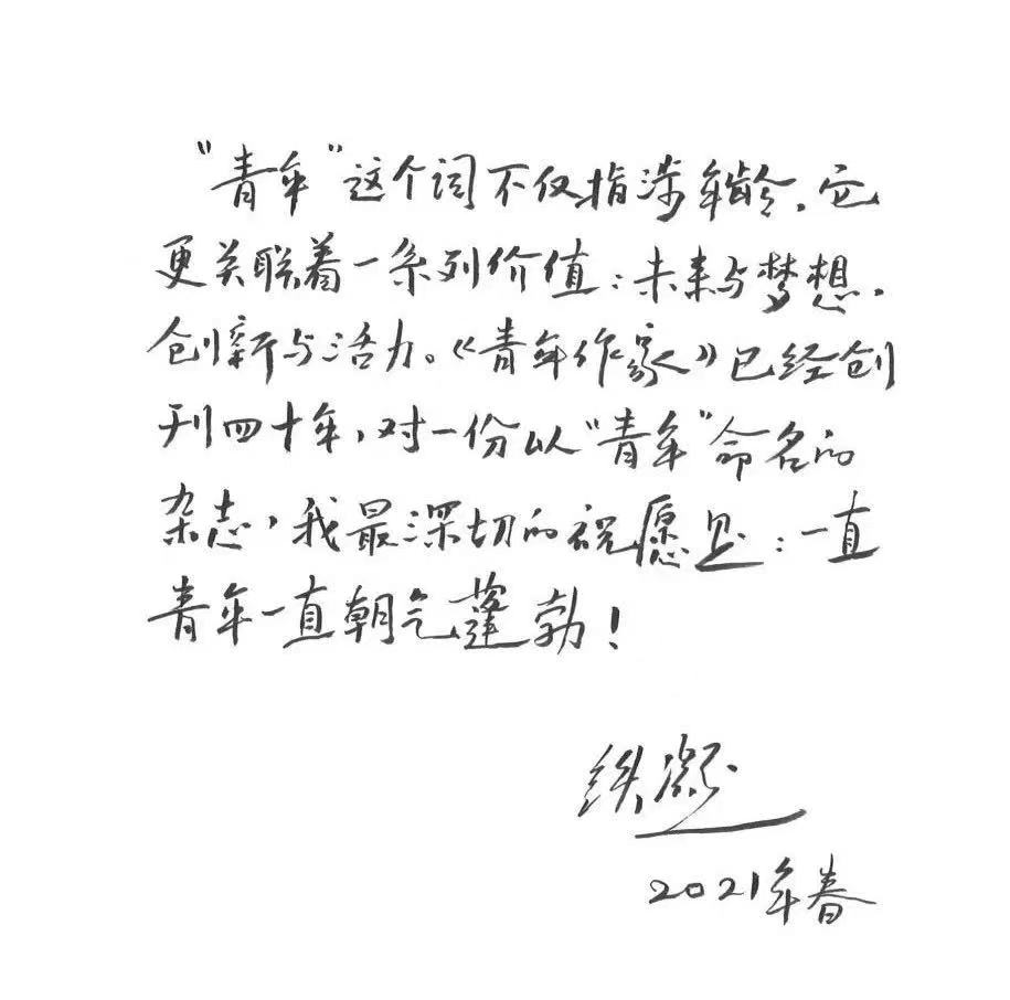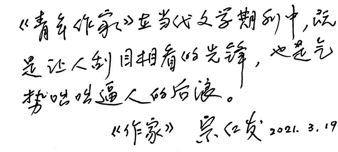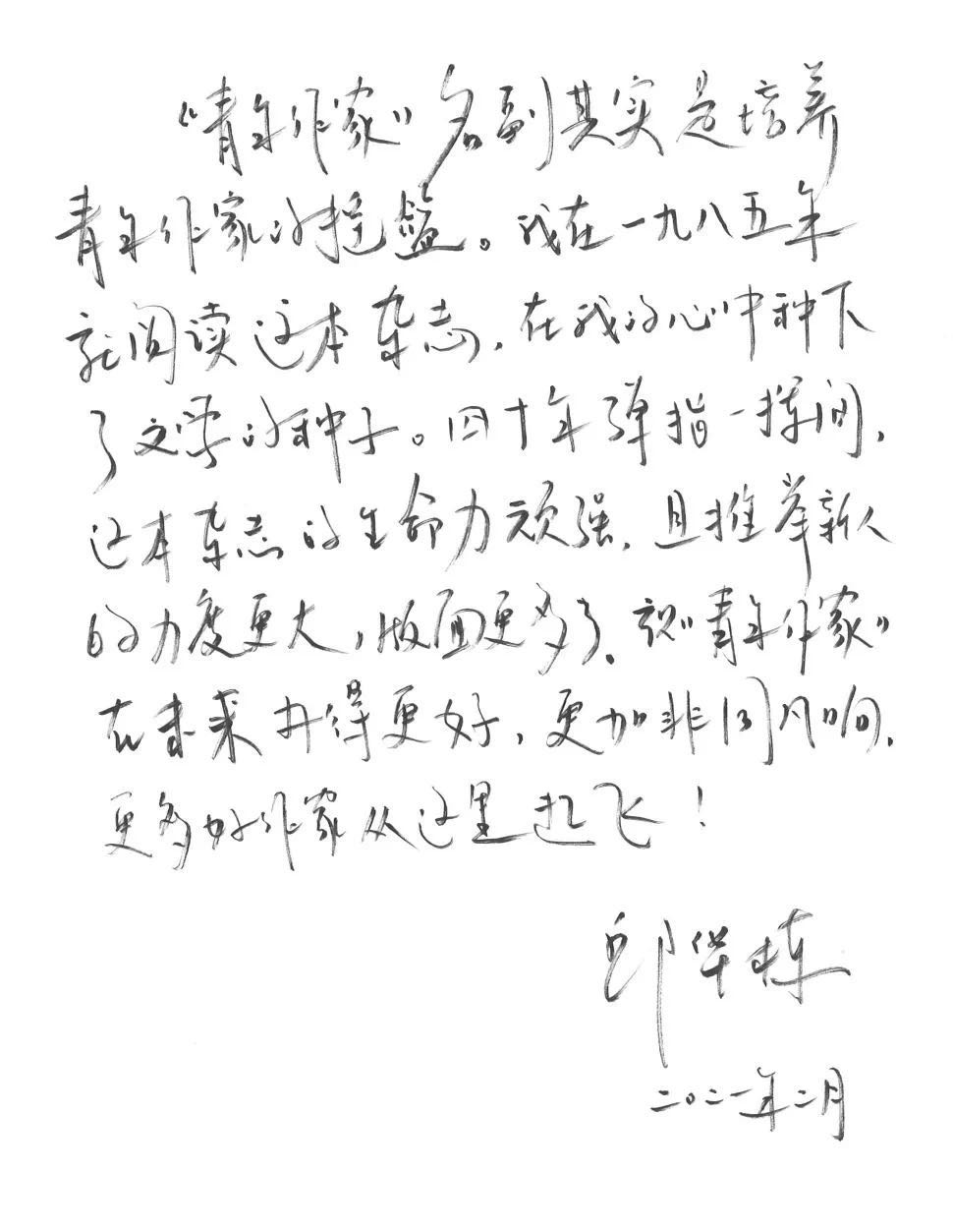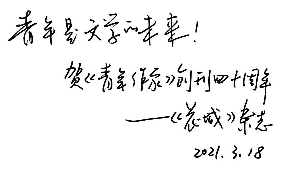 《青年作家》名副其实是培养青年作家的摇篮。我在一九八五年就阅读这本杂志,在我的心中种下了文学的种子。四十年弹指一挥间,这本杂志的生命力顽强,且推举新人的力度更大,版面更多了。祝《青年作家》在未来办得更好,更加非同凡响,更多好作家从这里起飞!