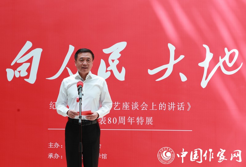 5月20日,由中国作协主办、中国现代文学馆承办的“向人民大地——纪念《在延安文艺座谈会上的讲话》发表80周年特展”在京开幕。中国作协主席铁凝出席开幕式并致辞。中国作协党组书记、副主席张宏森宣布展览开幕。开幕式由中国作协副主席、书记处书记李敬泽主持。中国作协党组、书记处同志吴义勤、陈彦、胡邦胜、邱华栋、施战军、邓凯出席开幕式。
