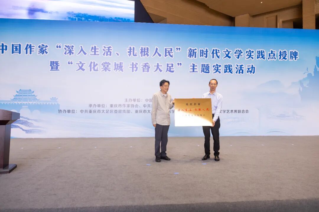 10月13日上午,中国作家“深入生活、扎根人民”新时代文学实践点授牌活动在重庆市大足区举行。大足获批成为中国作协在重庆设立的第二个、渝西地区首个实践点,也是“重庆作家‘深入生活、扎根人民’新时代文学实践点”,标志着大足文学事业获得了新的发展机遇。