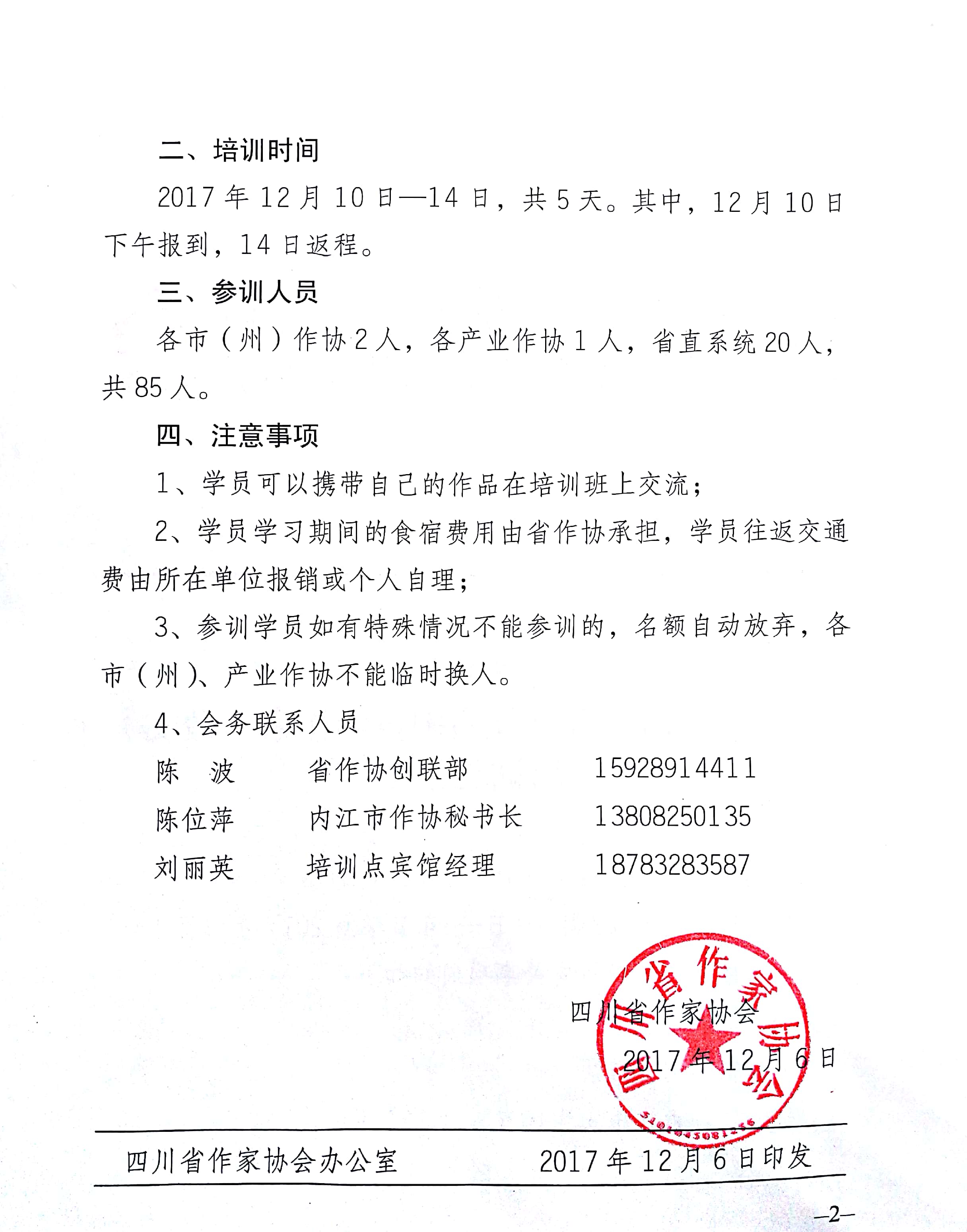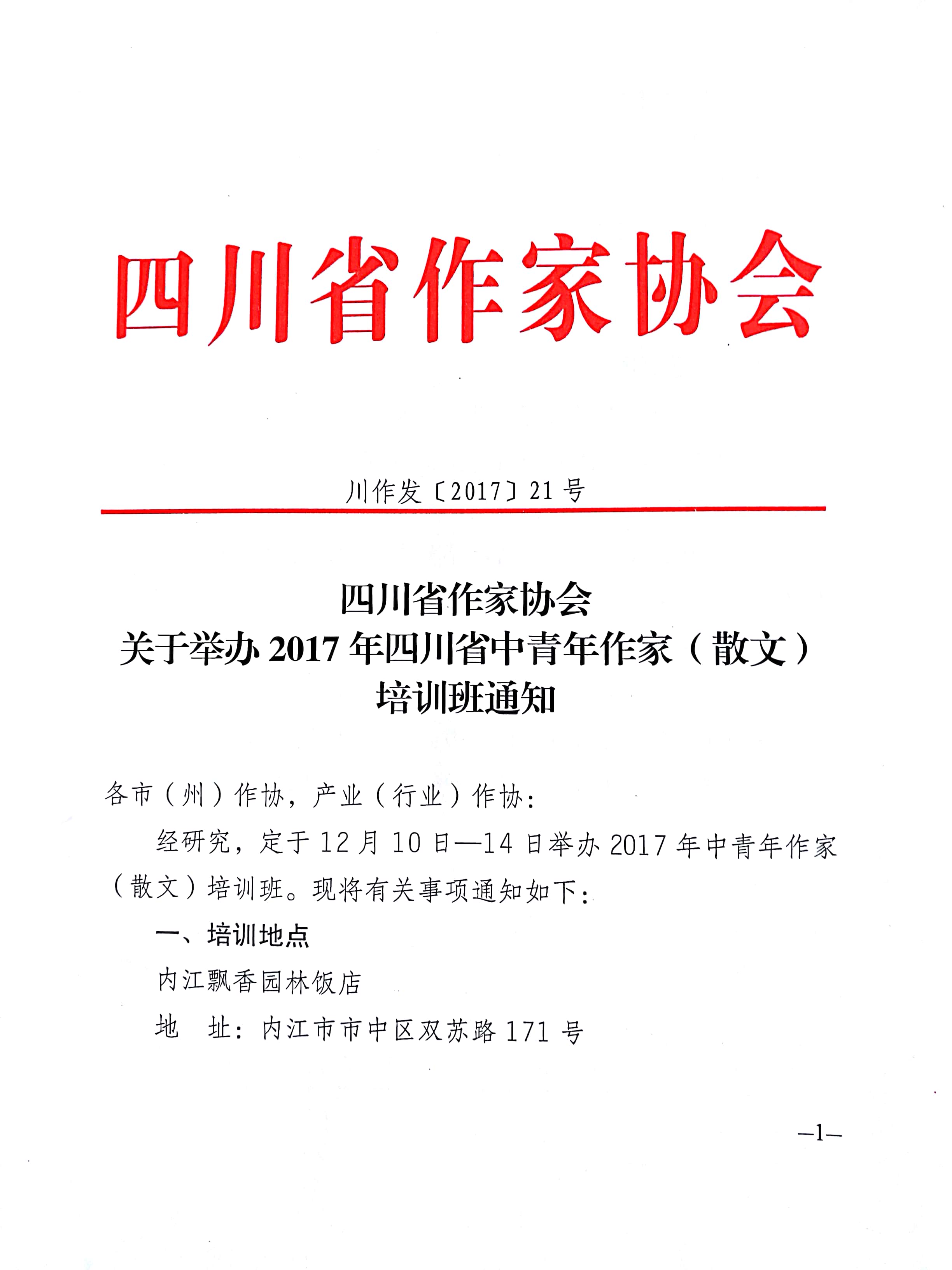 关于2017四川中青年作家(散文)培训班通知