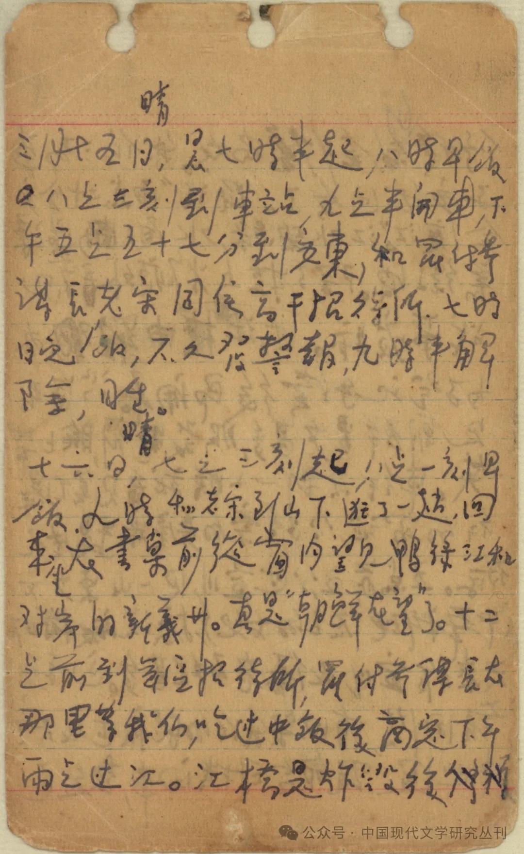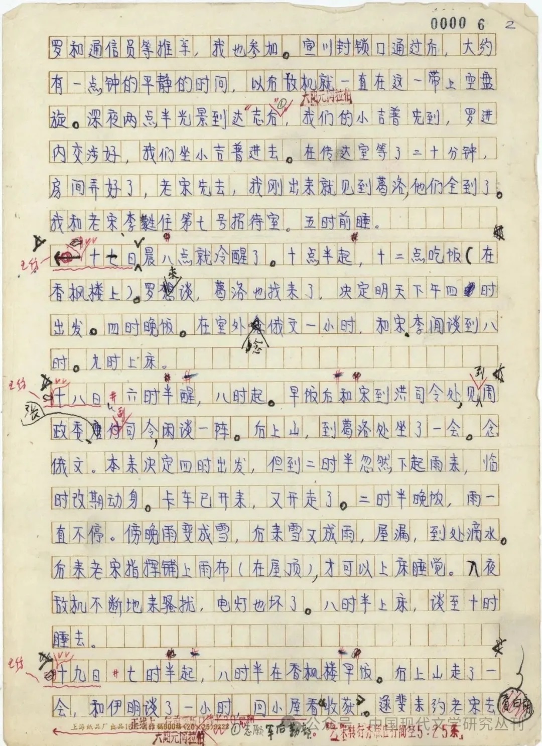 巴金《赴朝日记》1952年7月2日日记手稿及抄稿