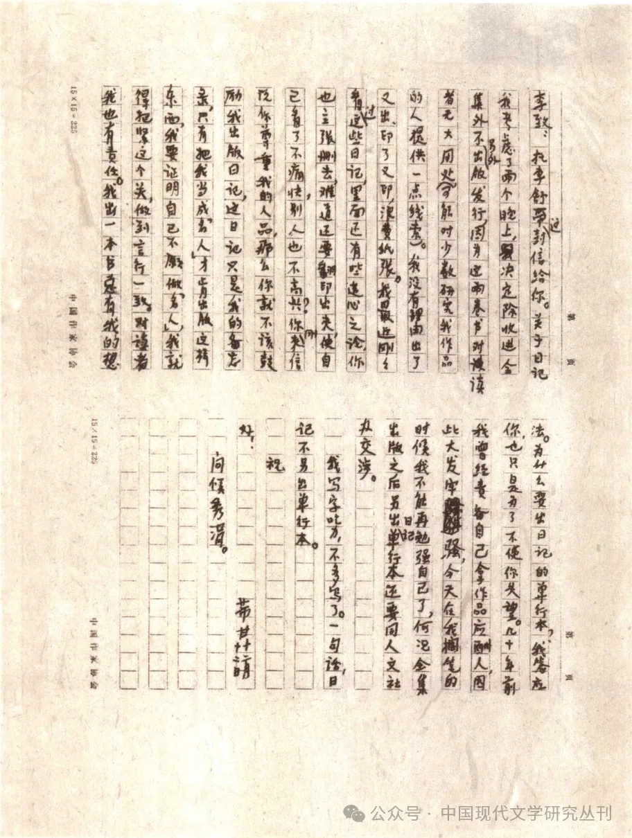 1985年初,人民文学出版社编辑王仰晨曾致信巴金,提议编辑出版《巴金全集》(后简称《全集》),得到巴金同意并受委托主持《全集》编辑事宜。[7]1986年11月,李致去上海看望巴金时,巴金计划将《全集》中日记部分交李致校看。1988年巴金开始着手《全集》日记卷的整理工作,他曾希望李致退休后能协助其做《全集》的编校整理工作,信中道:“有一个时候我倒希望你退下来帮忙我做点工作,例如整理我的日记、佚文、书信等等,还有在我不能工作的时候,代替我帮助王仰晨编好《全集》的后一部分。现在这些都成了空想。”[8]李致此时刚当选为四川省政协秘书长,一时无法全力协助,颇为愧疚,主动请缨负责校看日记。[9]