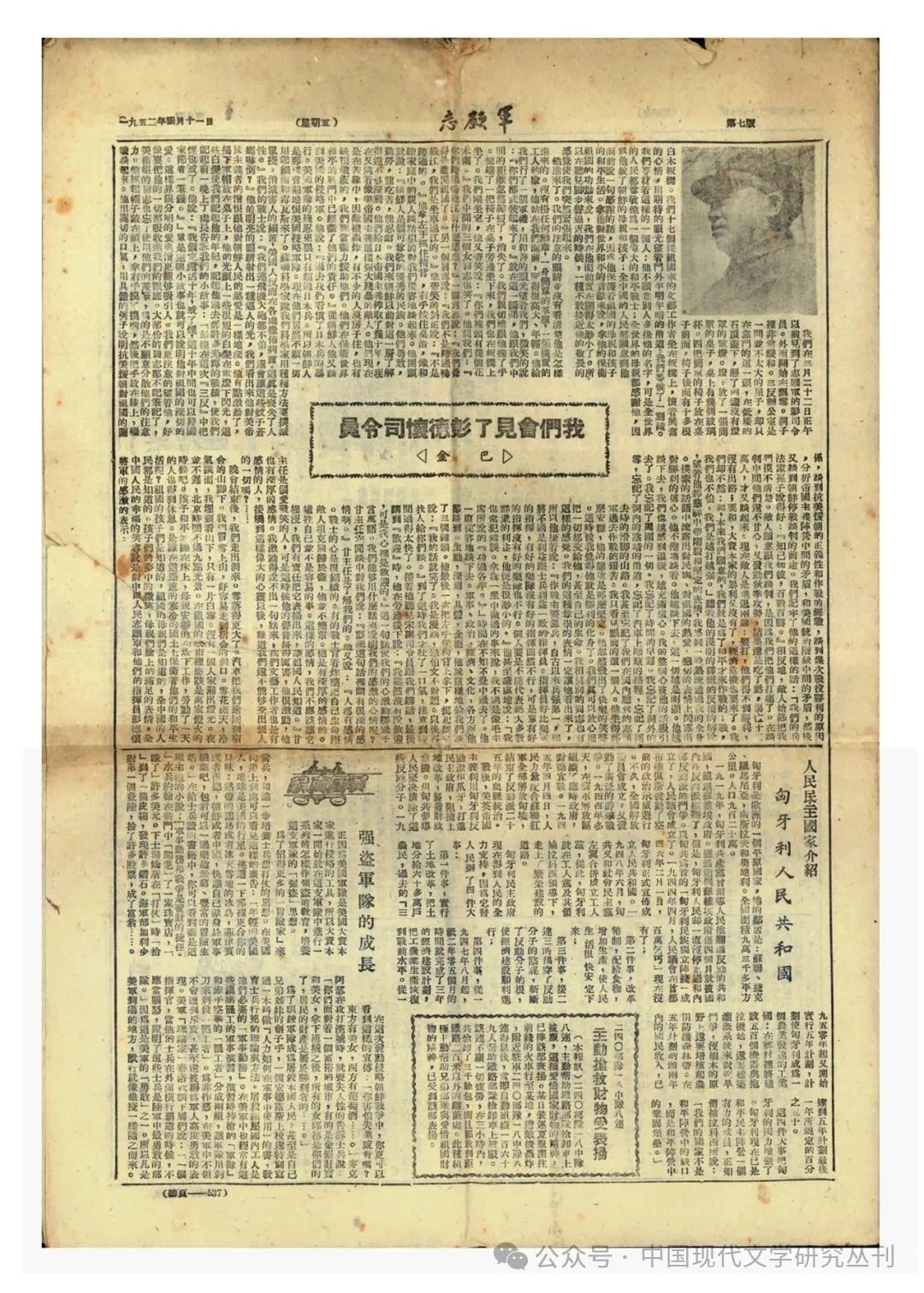 巴金 《我们会见了彭德怀司令员》,《人民日报》1952年4月9日