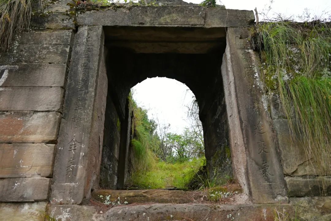 回到县城,我赓即联系了县档案馆馆长兼县政协文史研究院院长任颖辉先生,并微信发去所拍的寨门照片,请他辨认石刻文字。几个小时后,终于收到他的回复:经与几位文字和文史专家集体会诊,大家认为,寨门对联及其横批所刻文字应为:“高阙闬闳(hanhong,大门的意思)延爽气,坚吾壁垒障金氛”。门额横批是:“义贤亼(通集字,同集音)备”。横批左、右附注为:“大清咸丰二年(1852年),桂月下浣重建”,即农历八月下旬重建。并说明:这是当年本地贤达人士集合众人力量修建而成,旨在防范兵匪横行时,而建寨自保。因为,清朝咸丰年间,曾遭遇两次战争的威胁:一次是太平天国领导人之一的石达开的起义军从湖南、江西来四川,另一次是回民起义军领袖蓝大顺攻打成都。