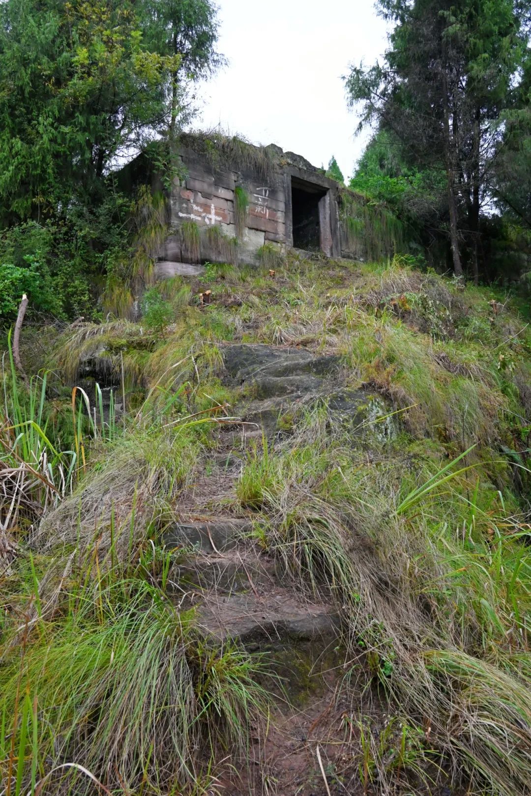 经过一长段陡坡,我们三人小心翼翼,一步一步下行,生怕路滑跌倒。为安全起见,细心的大表哥还特地给很少爬山的女同伴砍了一根木棍,拄棍而行。