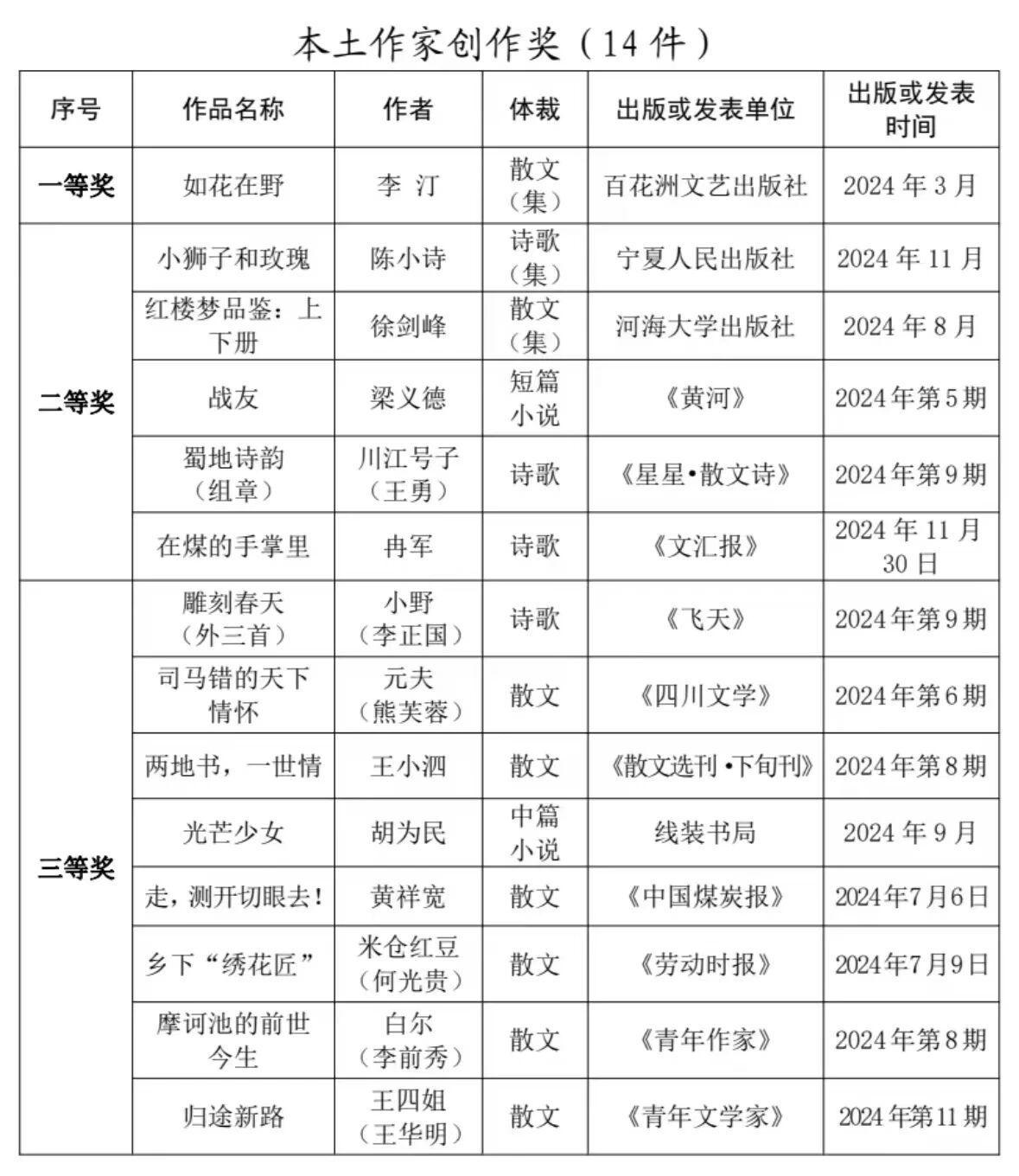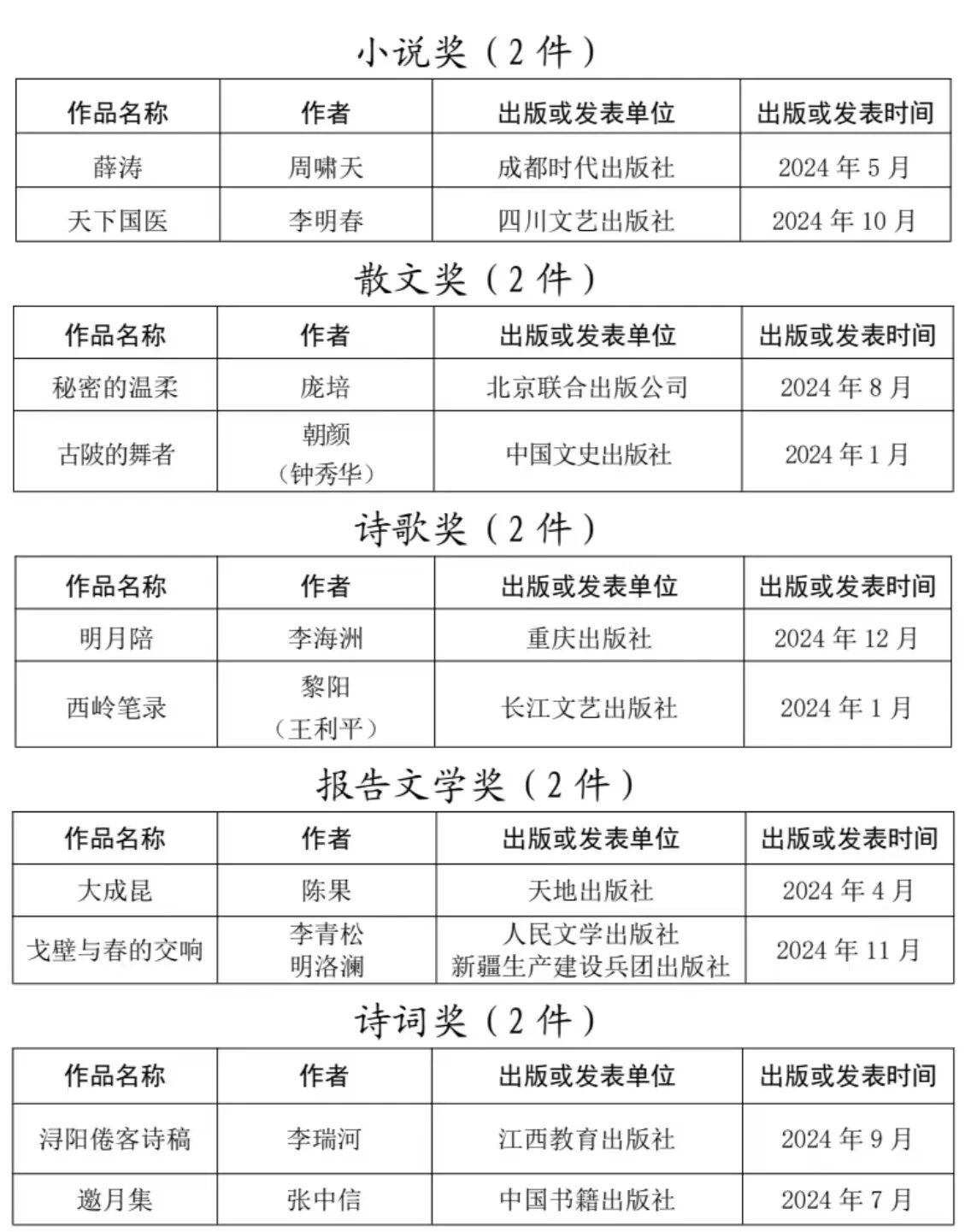 附件:第十二届剑门关文学奖拟获奖作品目录